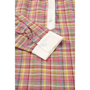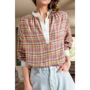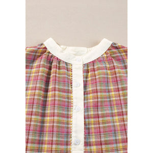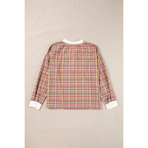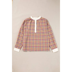 Plaid Half Button Long Sleeve Blouse