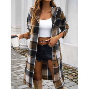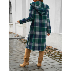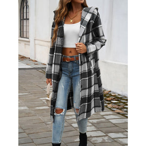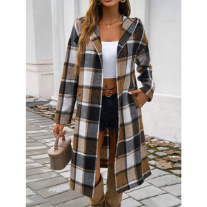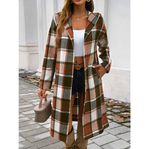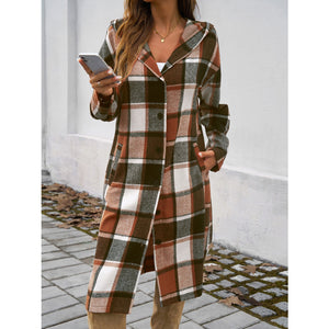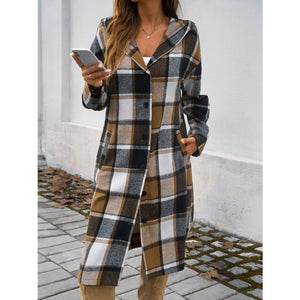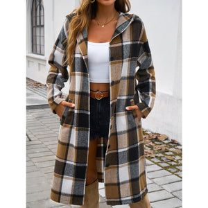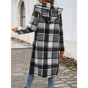 Plaid Long Sleeve Hooded Coat