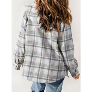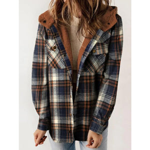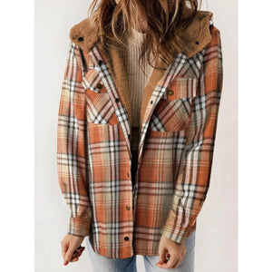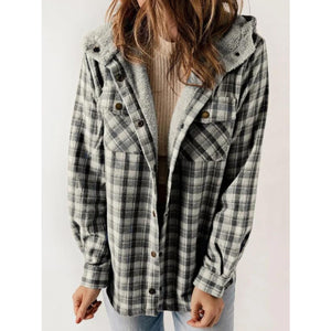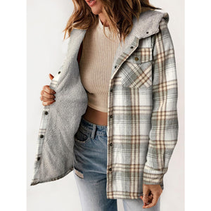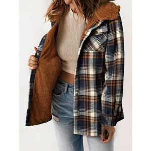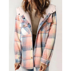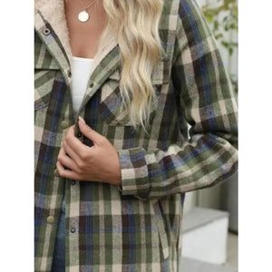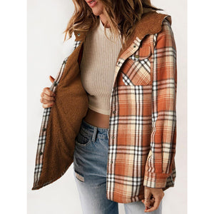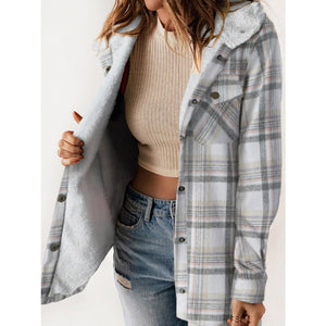 Plaid Snap Down Plush Hooded Jacket