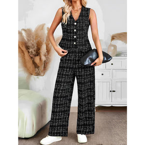 Plaid V-Neck Button Up Vest and Pants Set