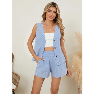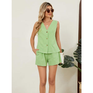 Plaid V-Neck Sleeveless Top and Shorts Set
