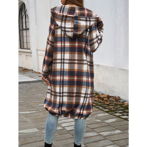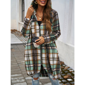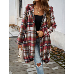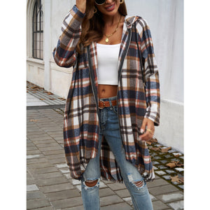 Plaid Zip Up Hooded Coat
