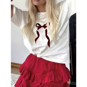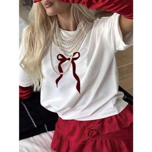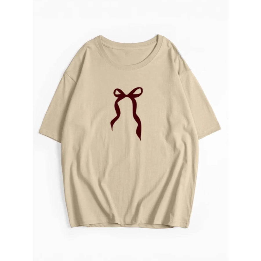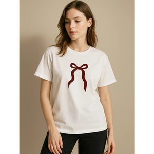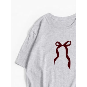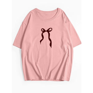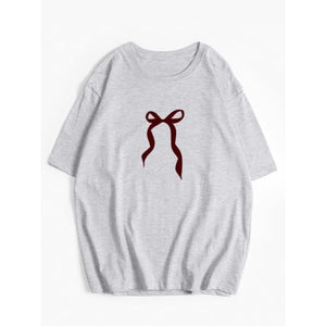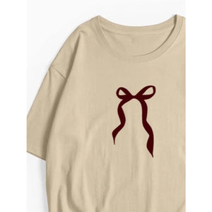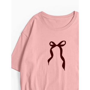 Plus Size Bow Round Neck Short Sleeve T-Shirt