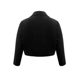 Plus Size Buttoned Lapel Collar Long Sleeve Blazer