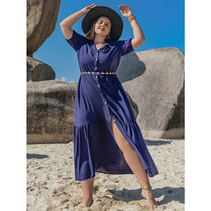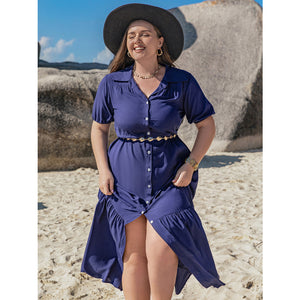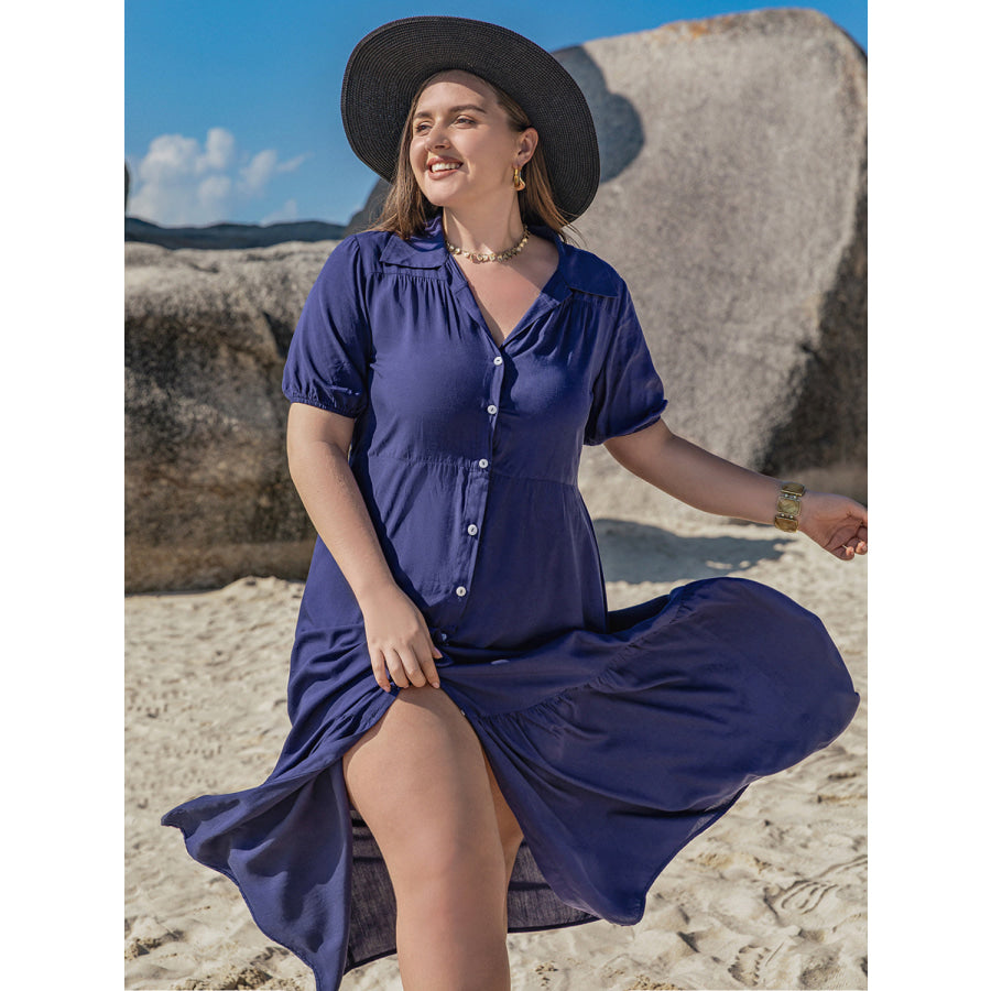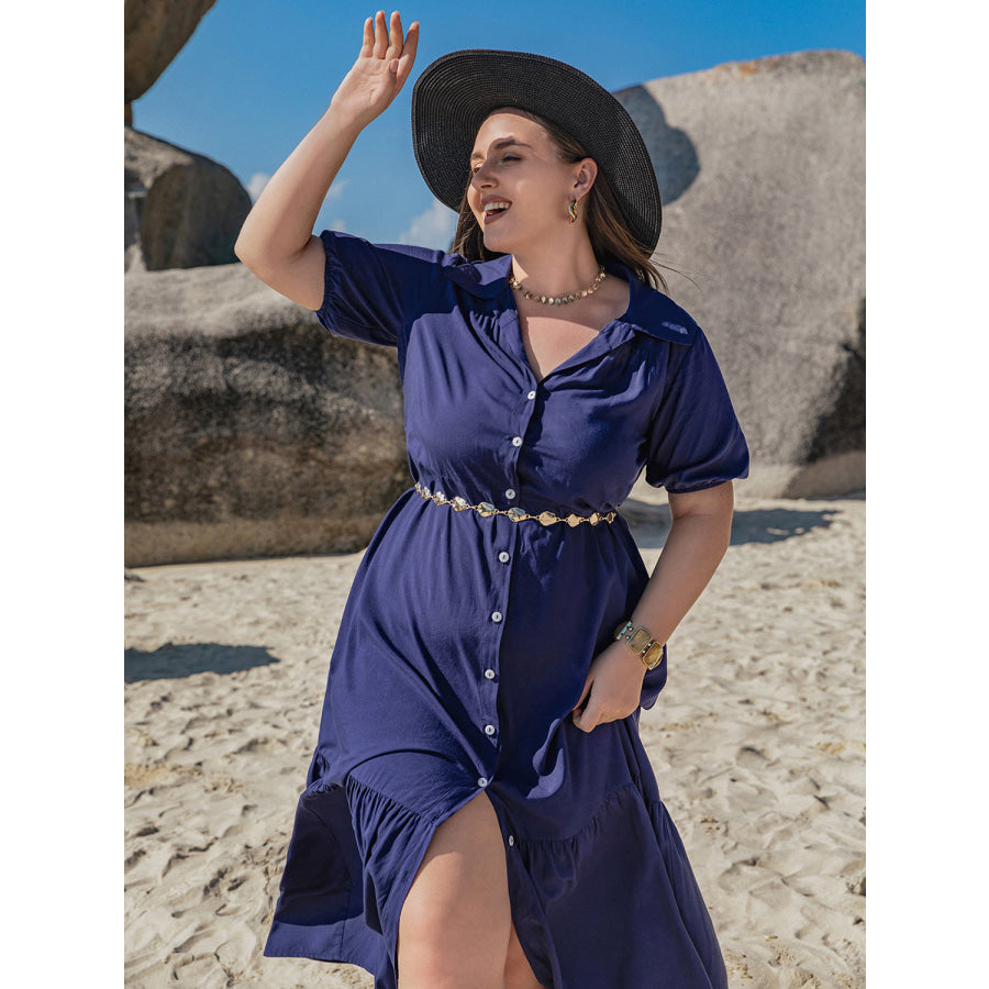 Plus Size Collared Neck Short Sleeve Midi Dress