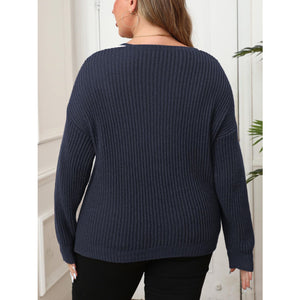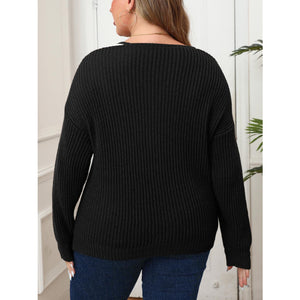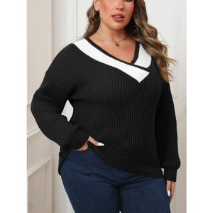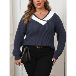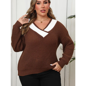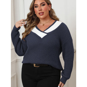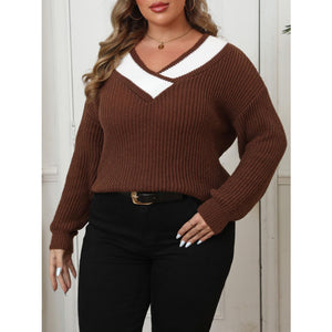 Plus Size Contrast Dropped Shoulder Long Sleeve Sweater