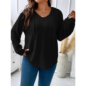 Plus Size Drawstring Dropped Shoulder Hooded T-Shirt