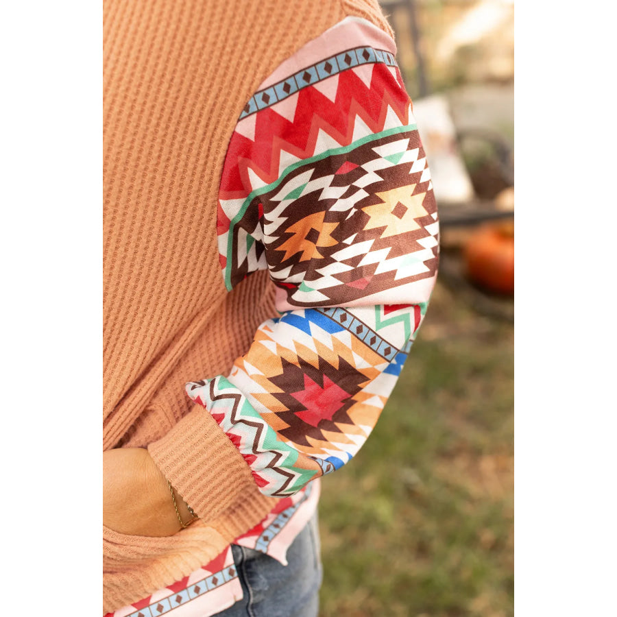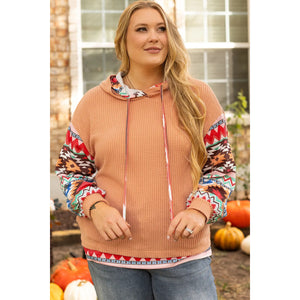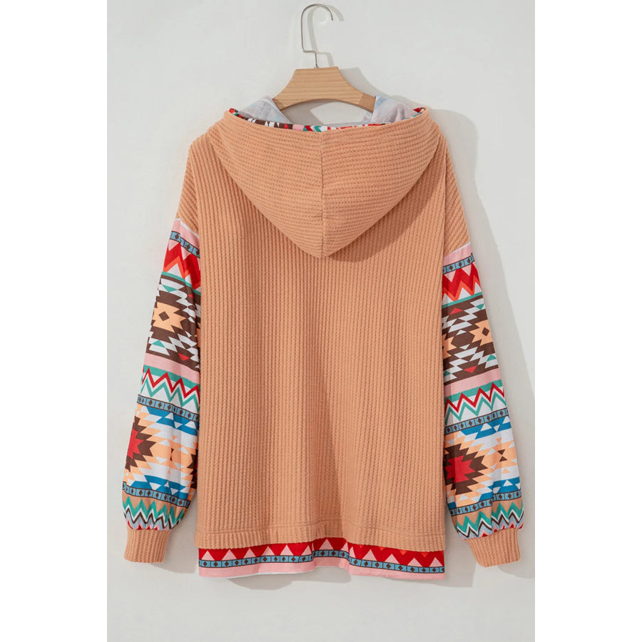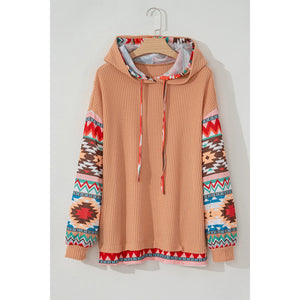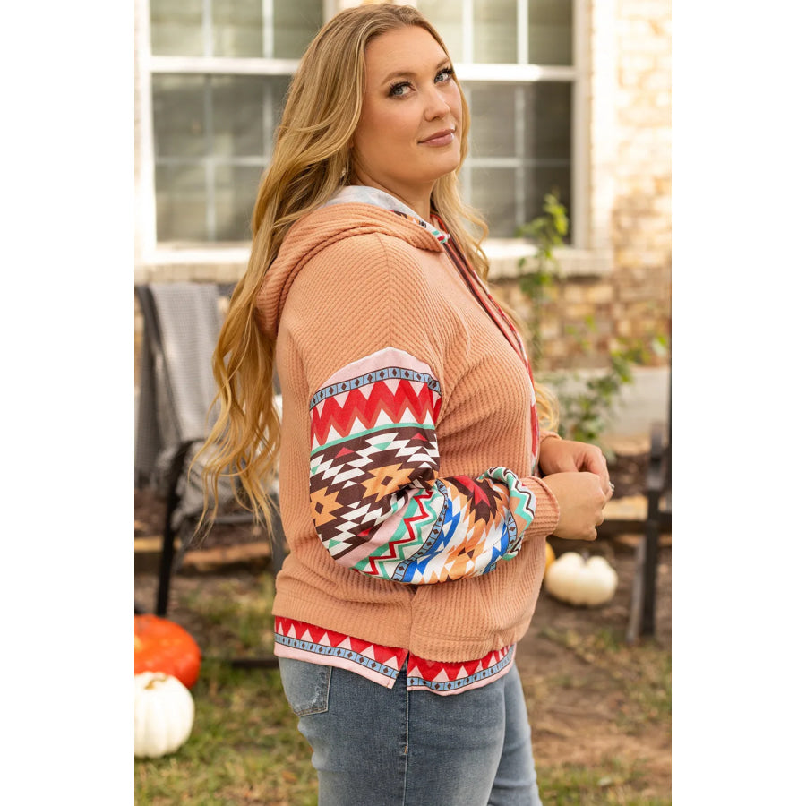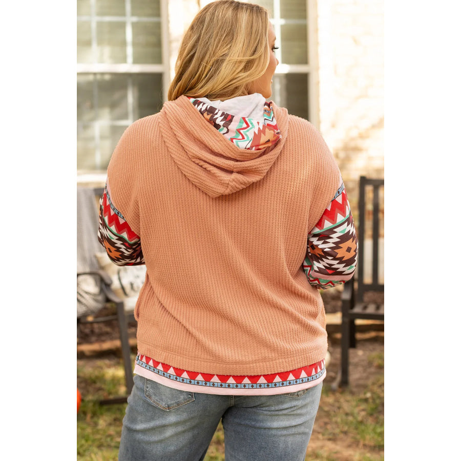 Plus Size Drawstring Geometric Long Sleeve Hoodie