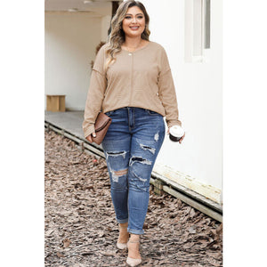 Plus Size Exposed Seam Dropped Shoulder T-Shirt