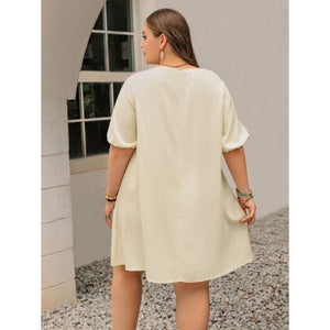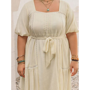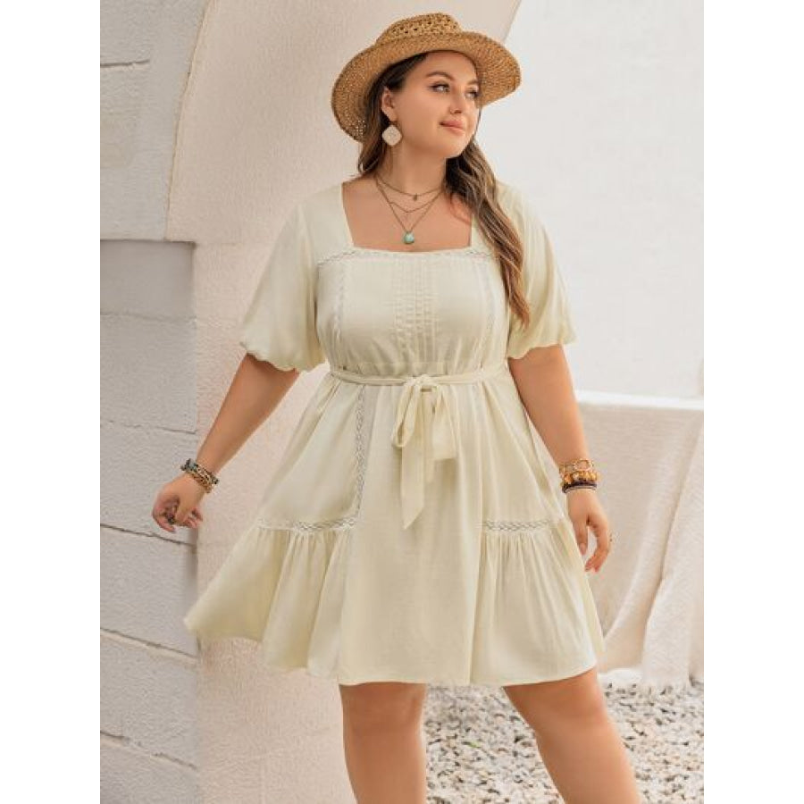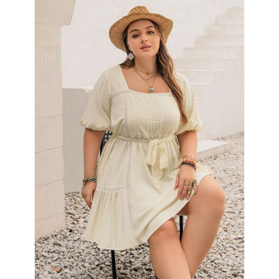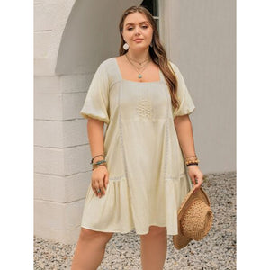 Plus Size Lace Detail Square Neck Puff Sleeve Mini Dress
