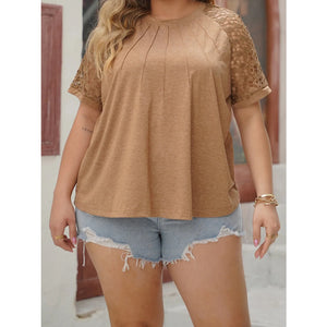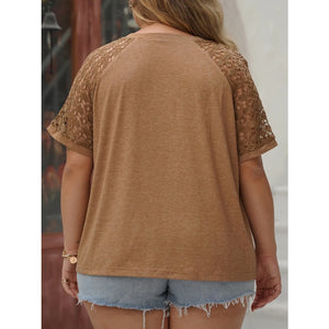 Plus Size Lace Round Neck Short Sleeve T-Shirt