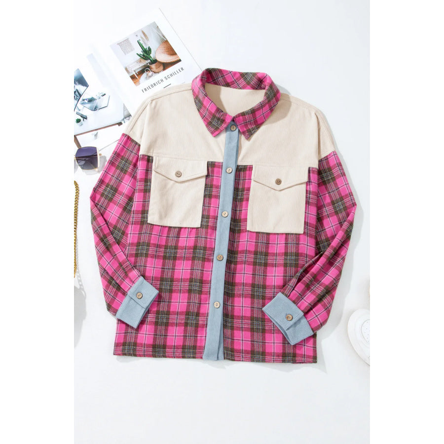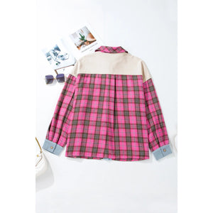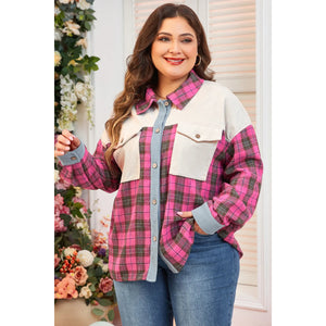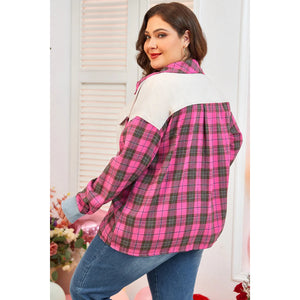 Plus Size Plaid Collared Neck Long Sleeve Shirt