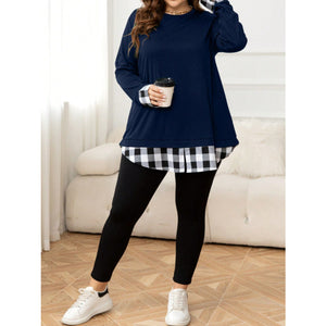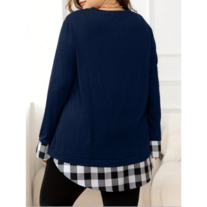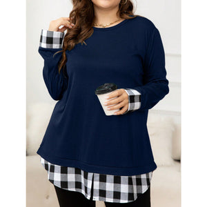 Plus Size Plaid Hem Round Neck Long Sleeve Sweatshirt