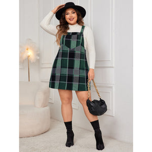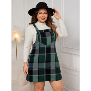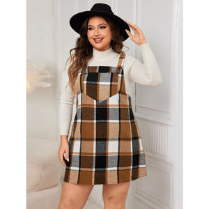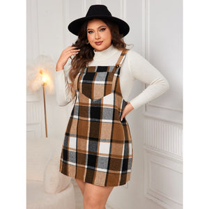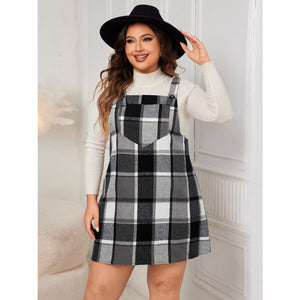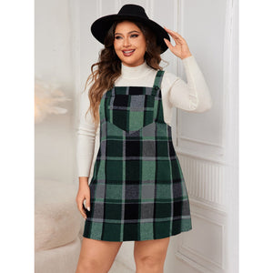 Plus Size Plaid Wide Strap Overall Dress