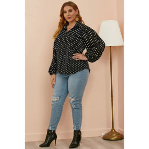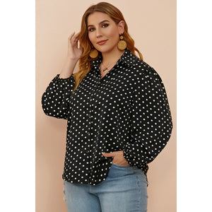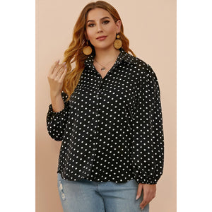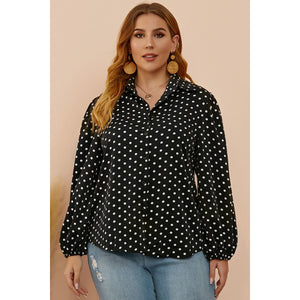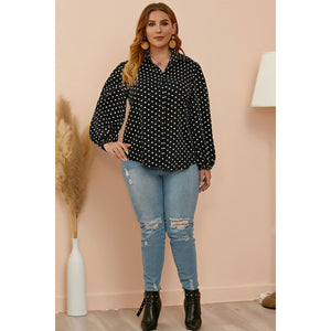 Plus Size Polka Dot Balloon Sleeve Shirt