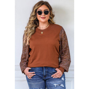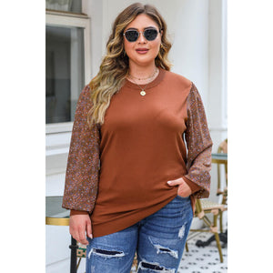 Plus Size Printed Dropped Shoulder Round Neck Blouse