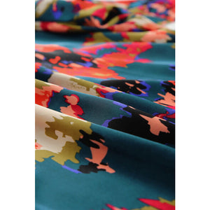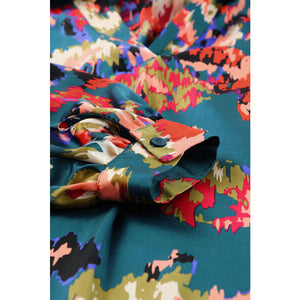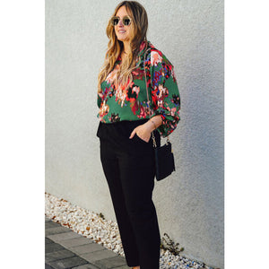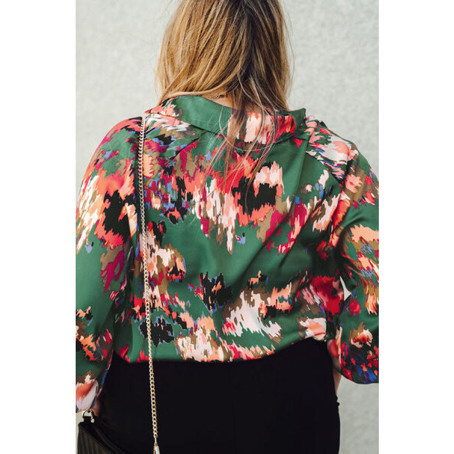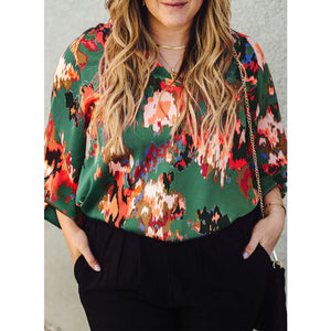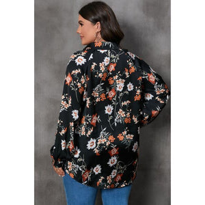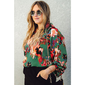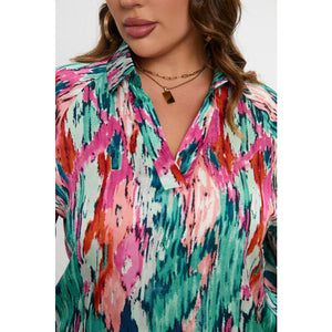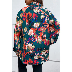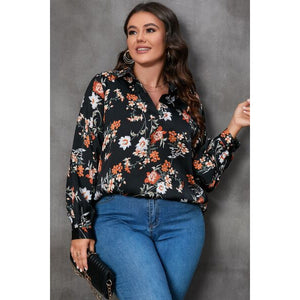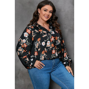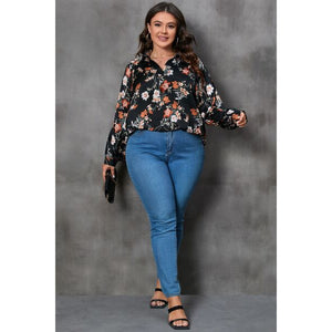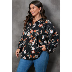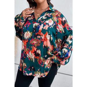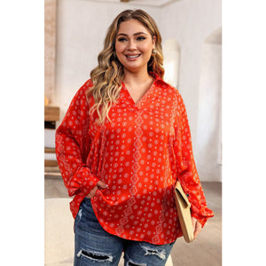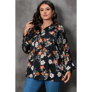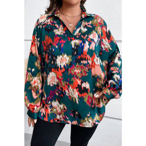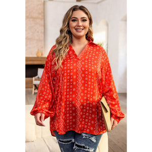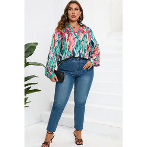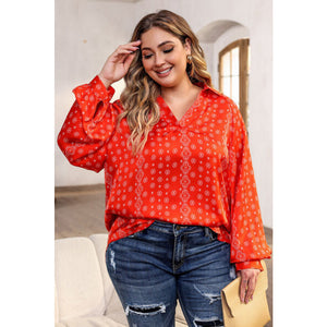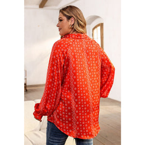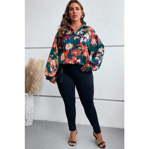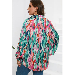 Plus Size Printed Johnny Collar Long Sleeve Blouse