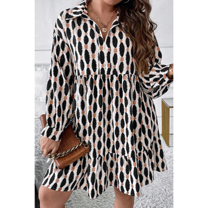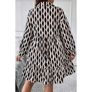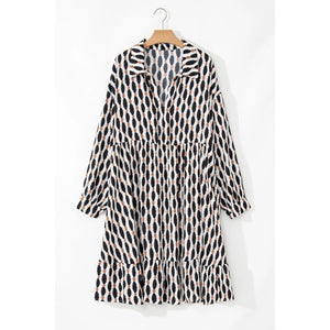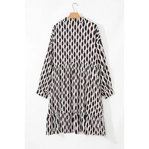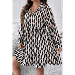 Plus Size Printed Johnny Collar Long Sleeve Dress