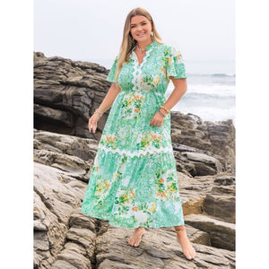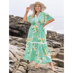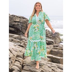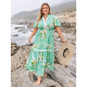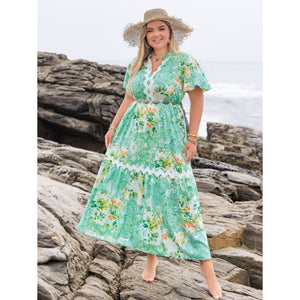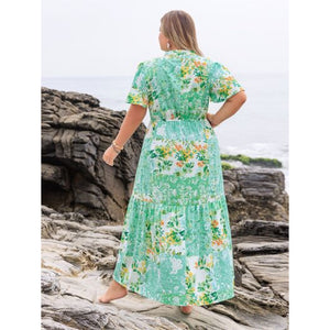 Plus Size Printed Notched Short Sleeve Maxi Dress