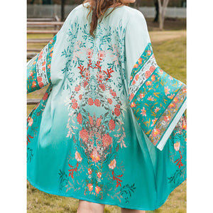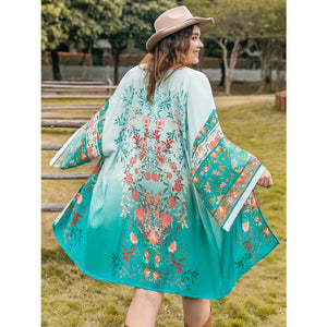 Plus Size Printed Open Front Long Sleeve Cover Up