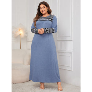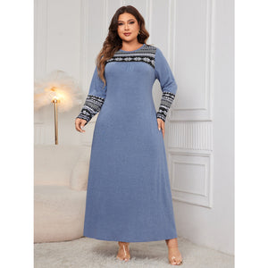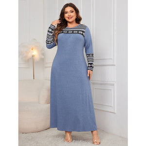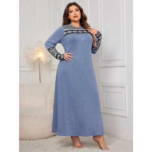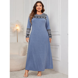 Plus Size Printed Round Neck Long Sleeve Dress