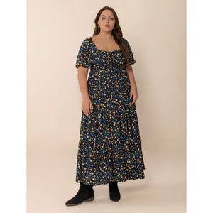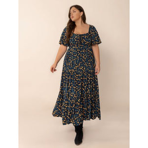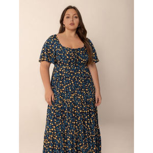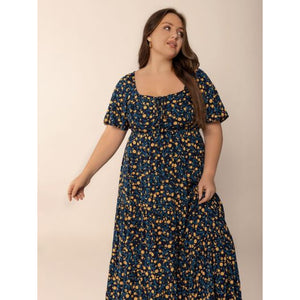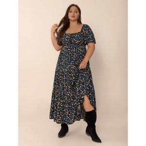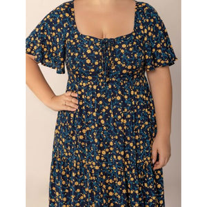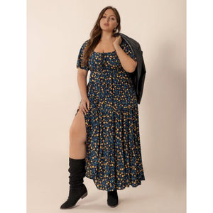 Plus Size Printed Short Sleeve Slit Tiered Maxi Dress
