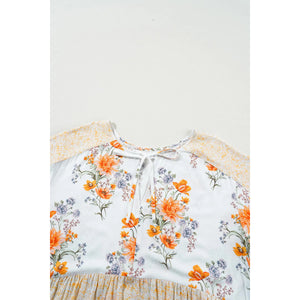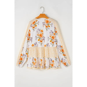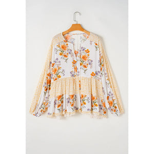 Plus Size Printed Tie Neck Long Sleeve Blouse