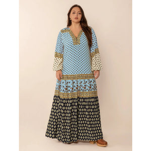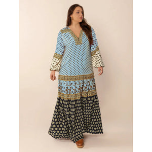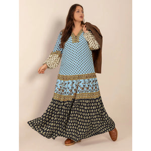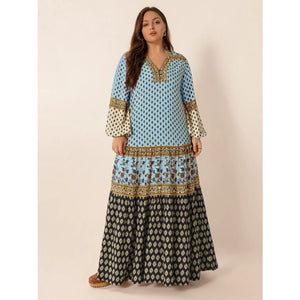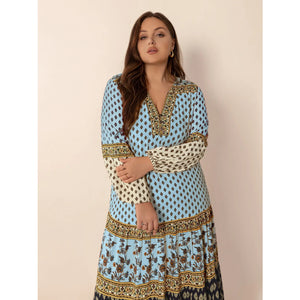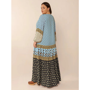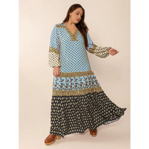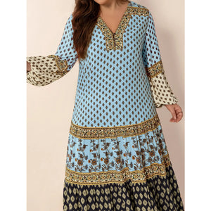 Plus Size Printed V-Neck Balloon Sleeve Maxi Dress