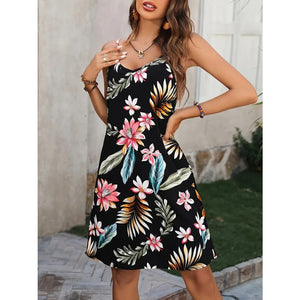 Plus Size Printed V-Neck Cami Dress