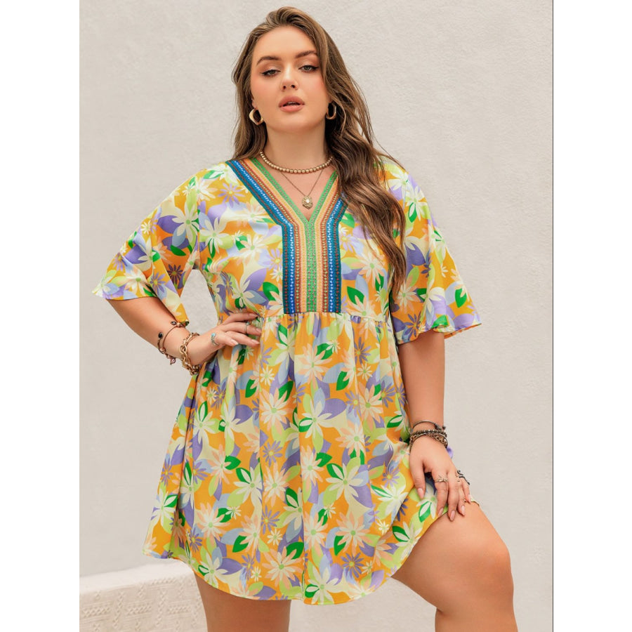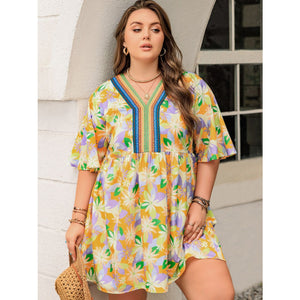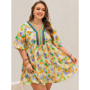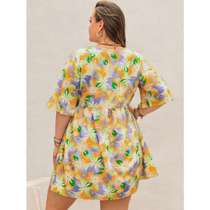 Plus Size Printed V-Neck Half Sleeve Mini Dress