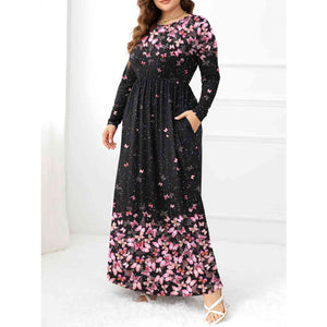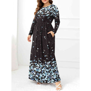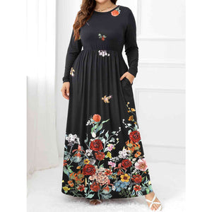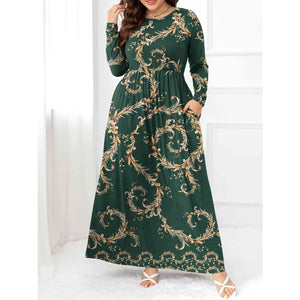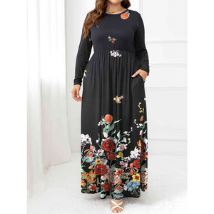 Plus Size Round Neck Maxi Dress with Pockets