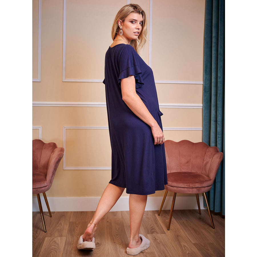 Plus Size Round Neck Short Sleeve Lounge Dress