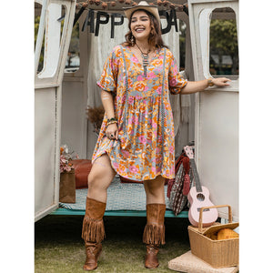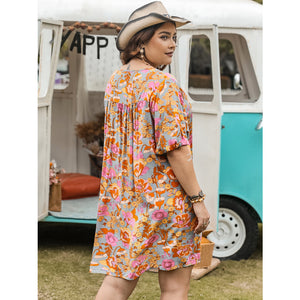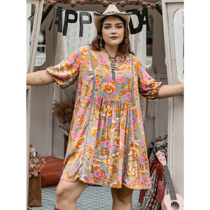 Plus Size Ruched Printed Half Sleeve Mini Dress