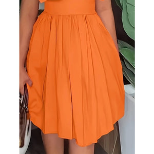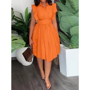 Plus Size Ruffled Collared Neck Cap Sleeve Dress