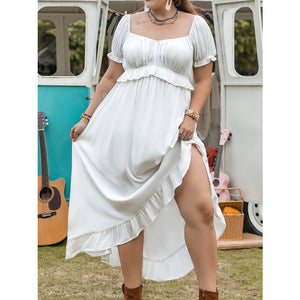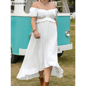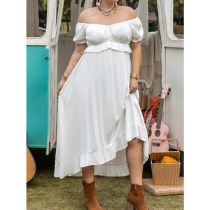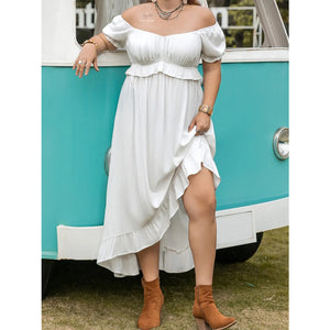 Plus Size Ruffled Hem Off-Shoulder Dress