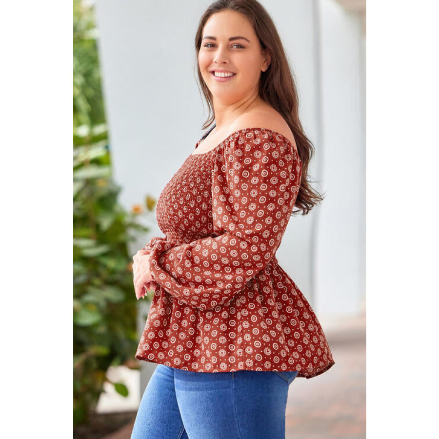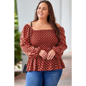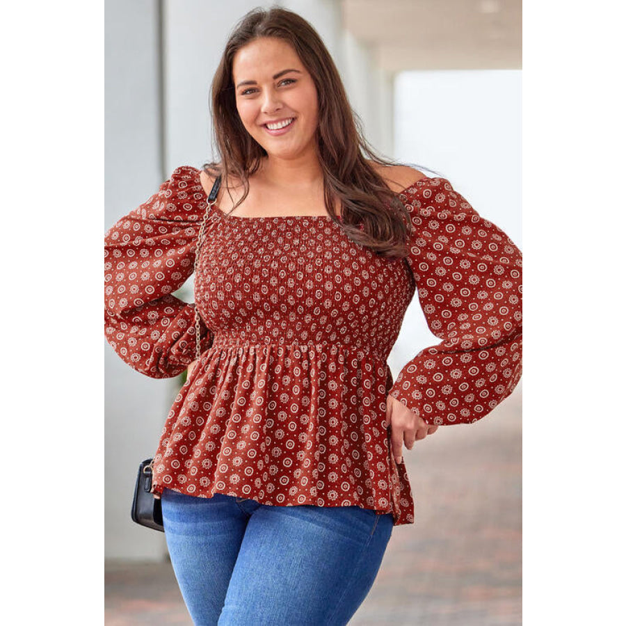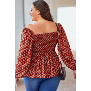 Plus Size Square Neck Balloon Sleeve Peplum Blouse
