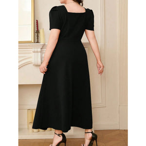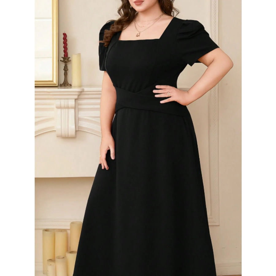 Plus Size Square Neck Puff Sleeve Midi Dress