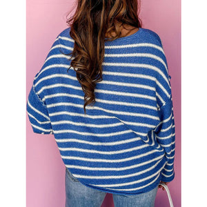 Plus Size Striped Round Neck Dropped Shoulder Sweater