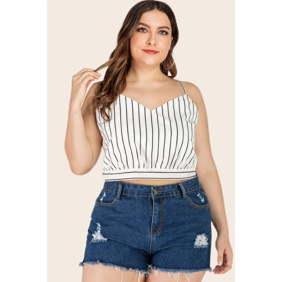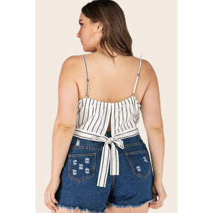 Plus Size Striped Tie-Back Cropped Cami