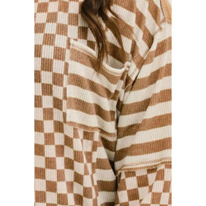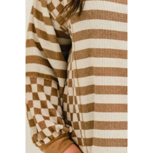 Plus Size Stripes & Checker Round Neck Long Sleeve Top