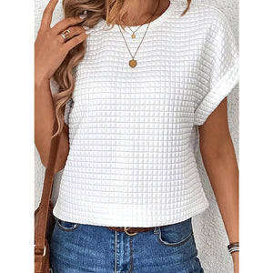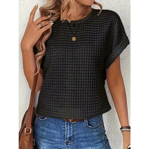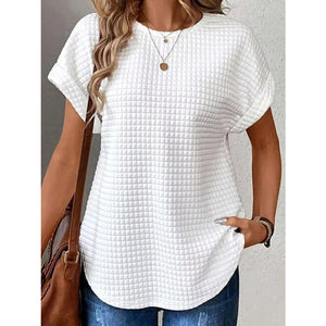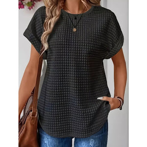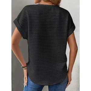Plus Size Textured Round Neck Short Sleeve Top