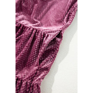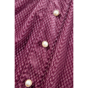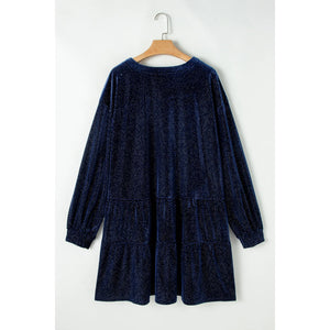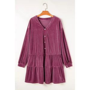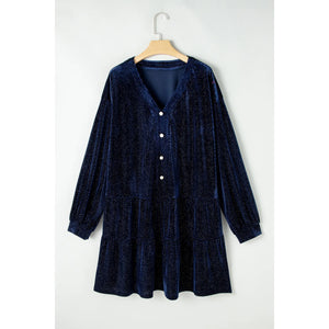 Plus Size Textured Velvet Decorative Button Long Sleeve Dress