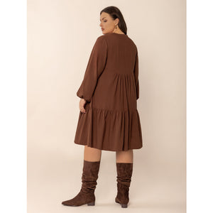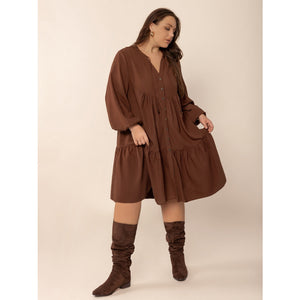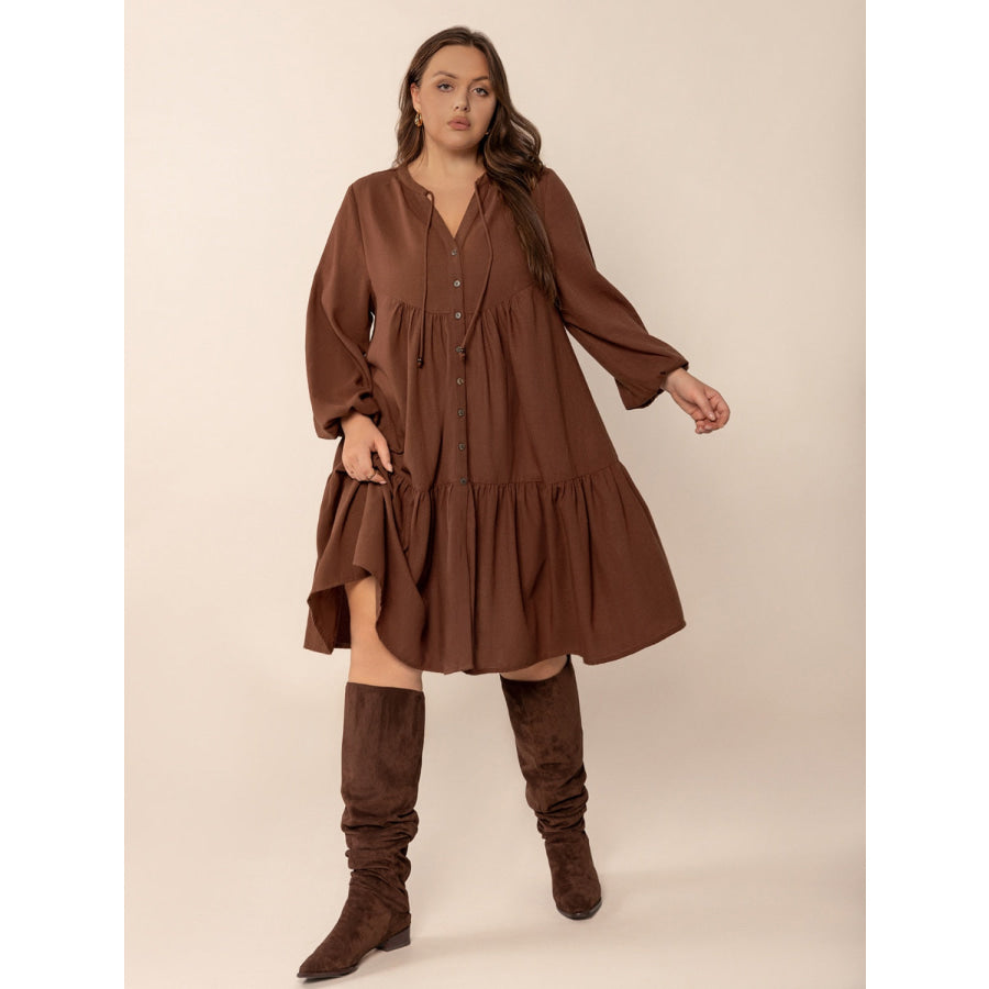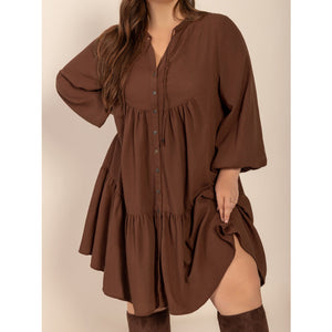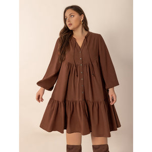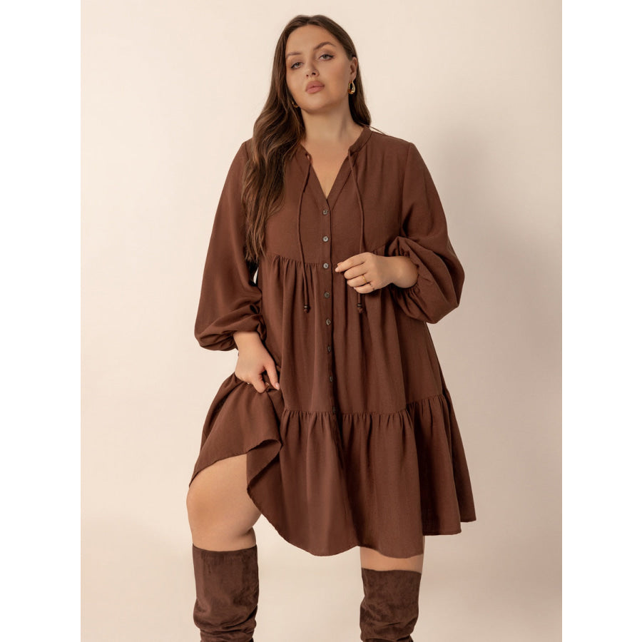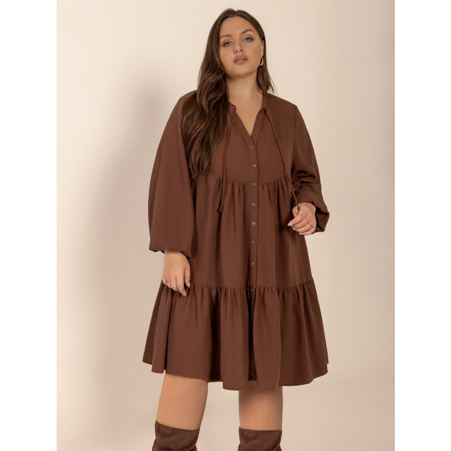 Plus Size Tie Neck Balloon Sleeve Tiered Dress