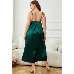 Plus Size Tie-Shoulder Midi Night Dress
