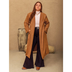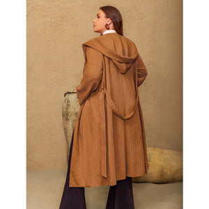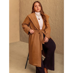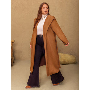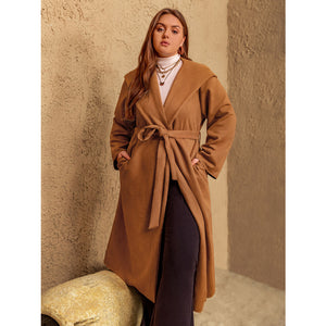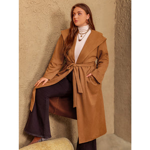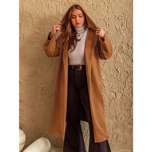 Plus Size Tied Long Sleeve Hooded Coat with Pockets
