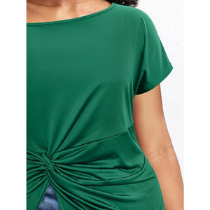 Plus Size Twisted Asymmetrical Neck Short Sleeve T-Shirt
