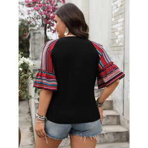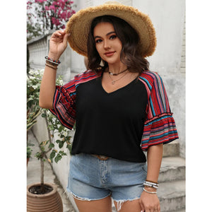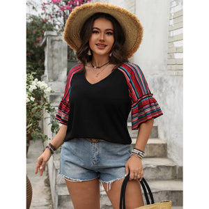 Plus Size V-Neck Flounce Sleeve Top