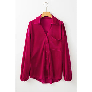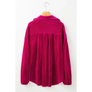 Pocketed Collared Neck Long Sleeve Shirt