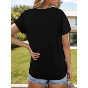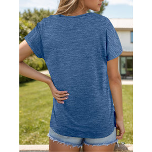 Pocketed Heathered V-Neck Short Sleeve T-Shirt
