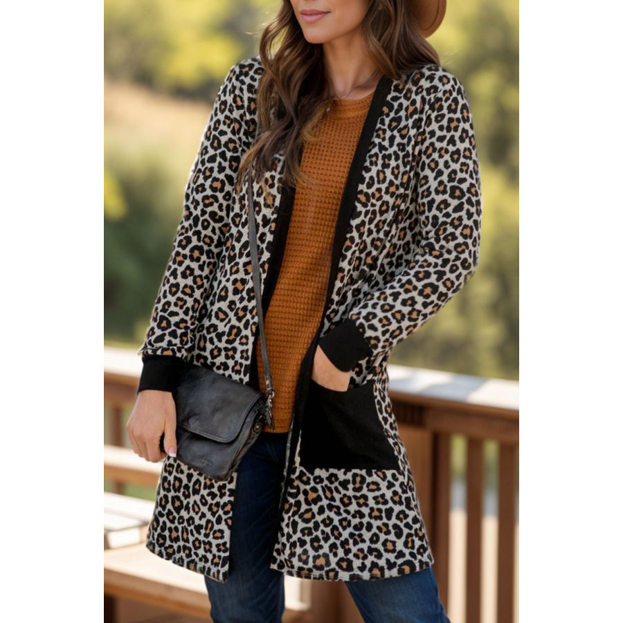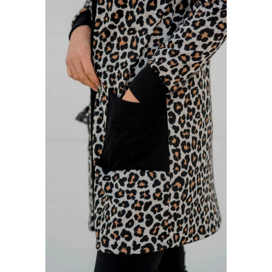 Pocketed Leopard Open Front Cover Up